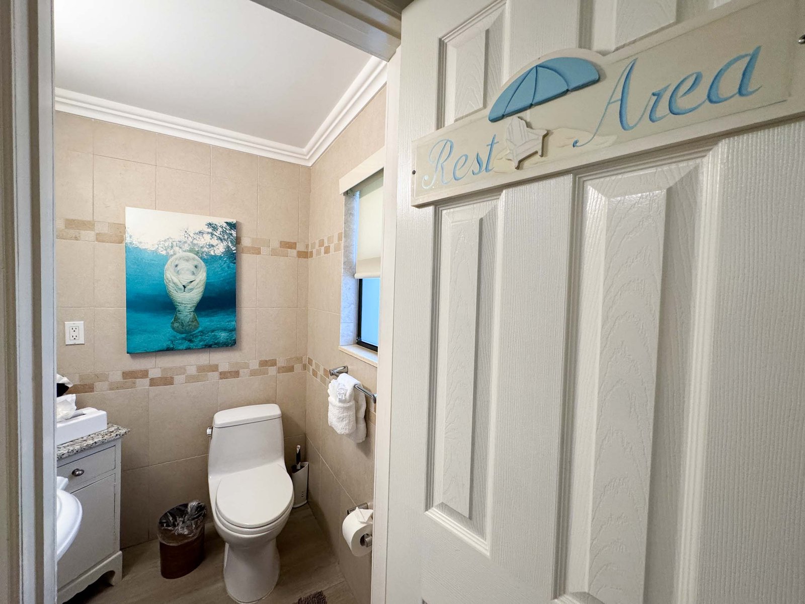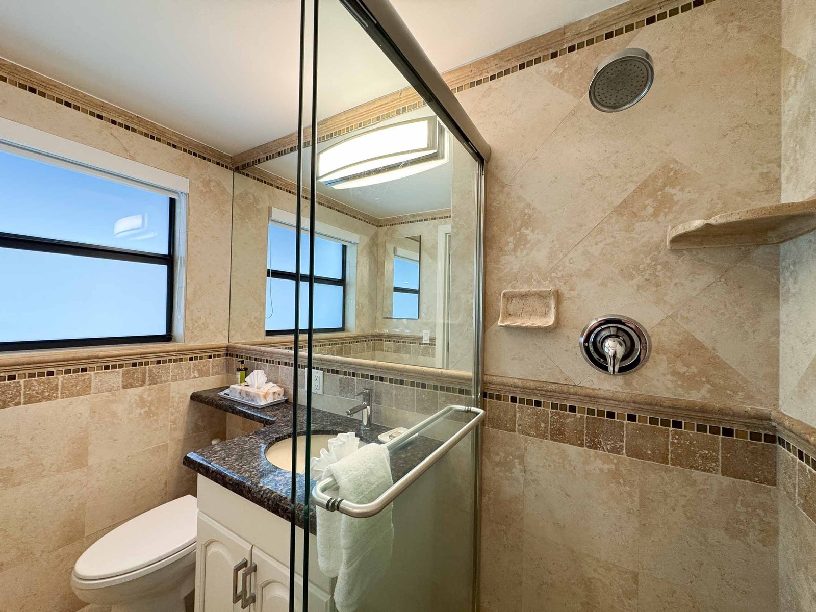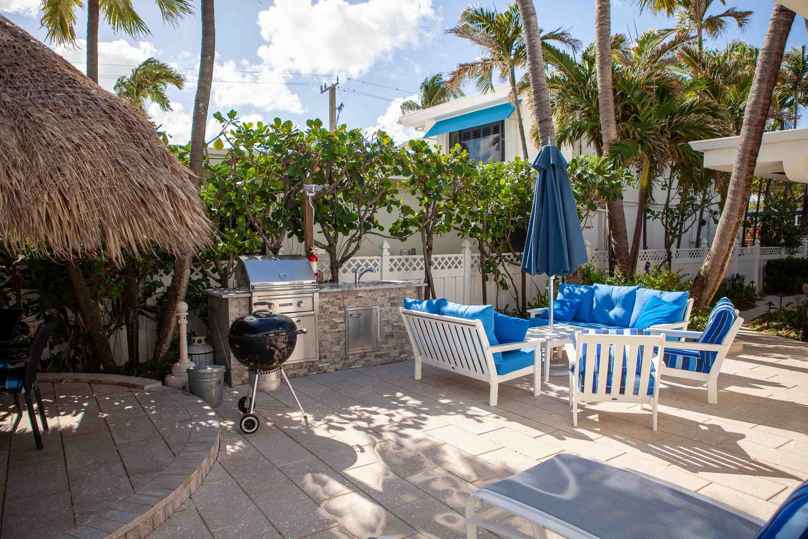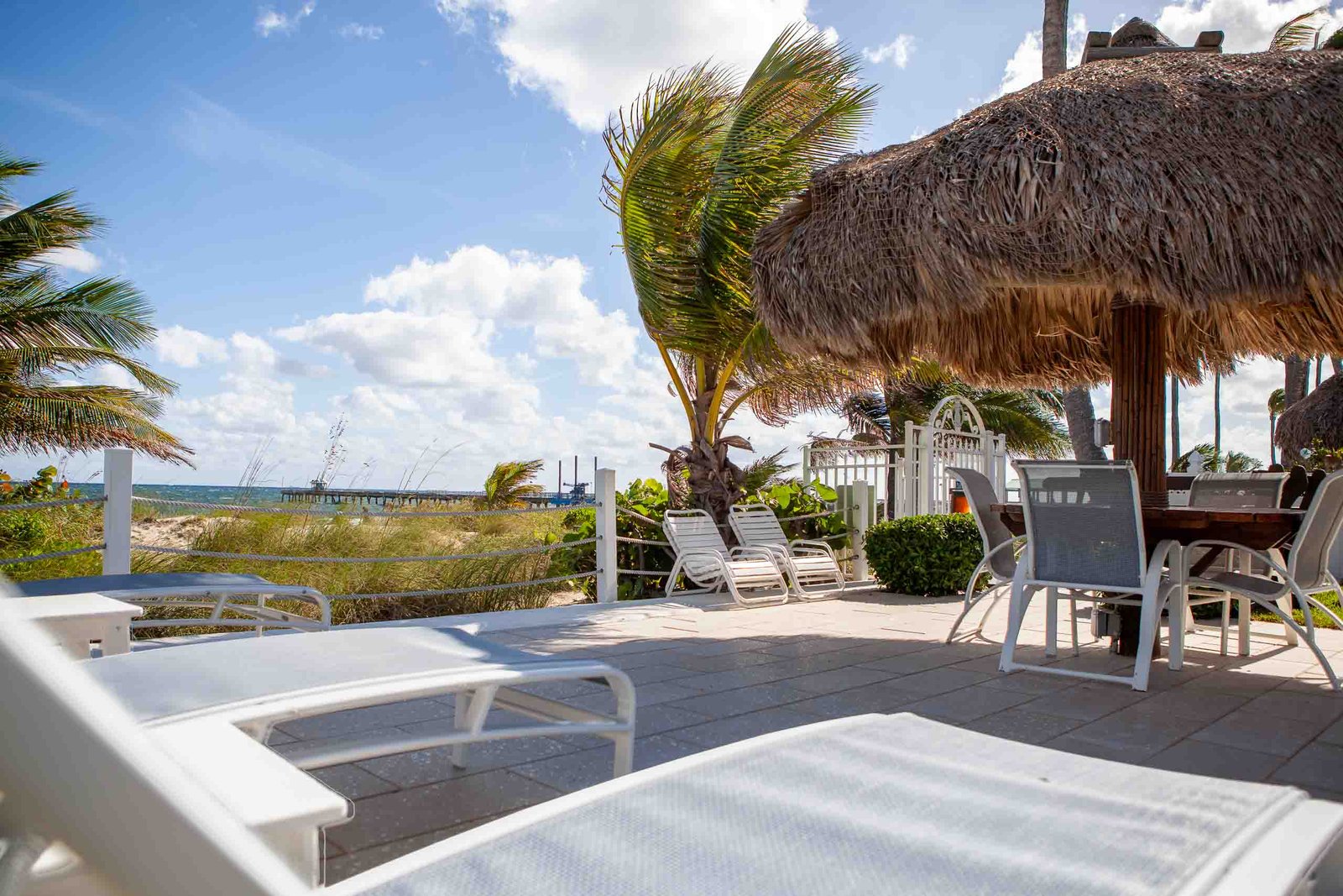 Our newly renovated Beach House is as private as it gets. Enjoy two spacious bedrooms, each with a king bed and private fully appointed baths, one with its own Jacuzzi tub and shower. There is a large living room with a queen sleeper sofa and a half bath. A fully equipped kitchen and a separate dining area offers a beautiful view of the beach side garden and the Atlantic ocean. A set of French doors lead out to the grand terrace patio with a large tiki hut and barbeque area with views of the coastline and the famous Lauderdale-by-the-Sea pier, looking north to the Hillsboro Lighthouse.