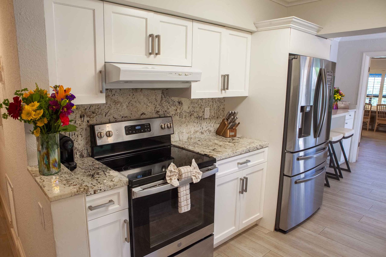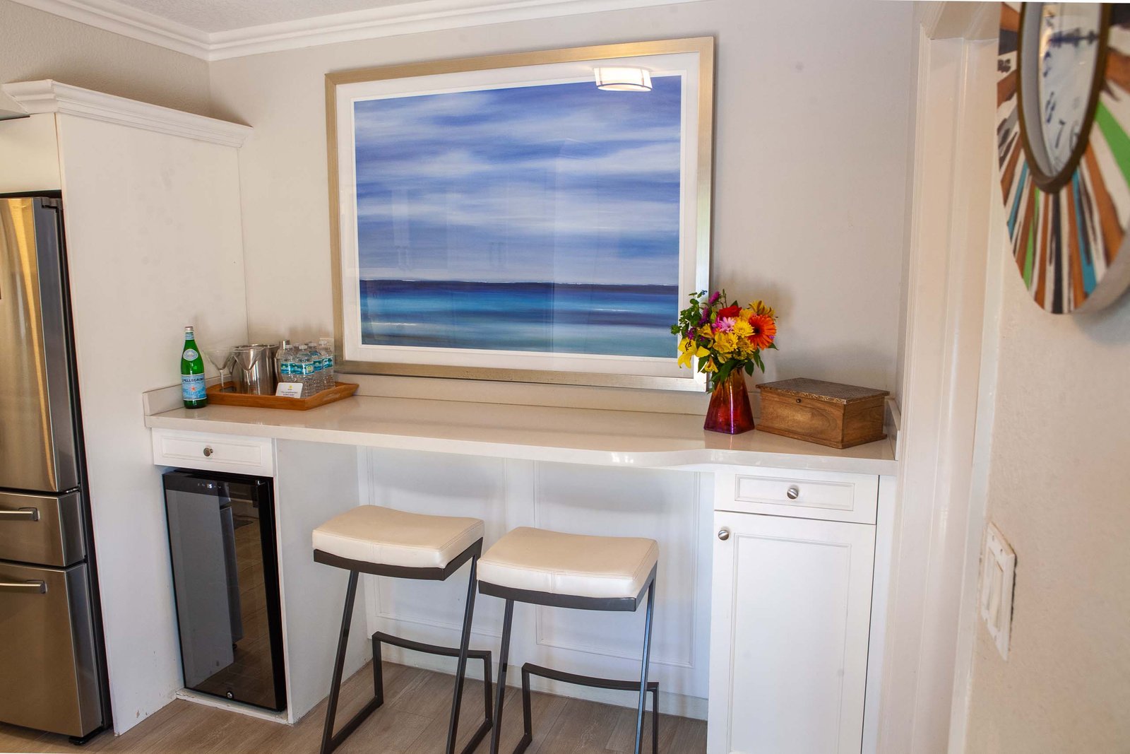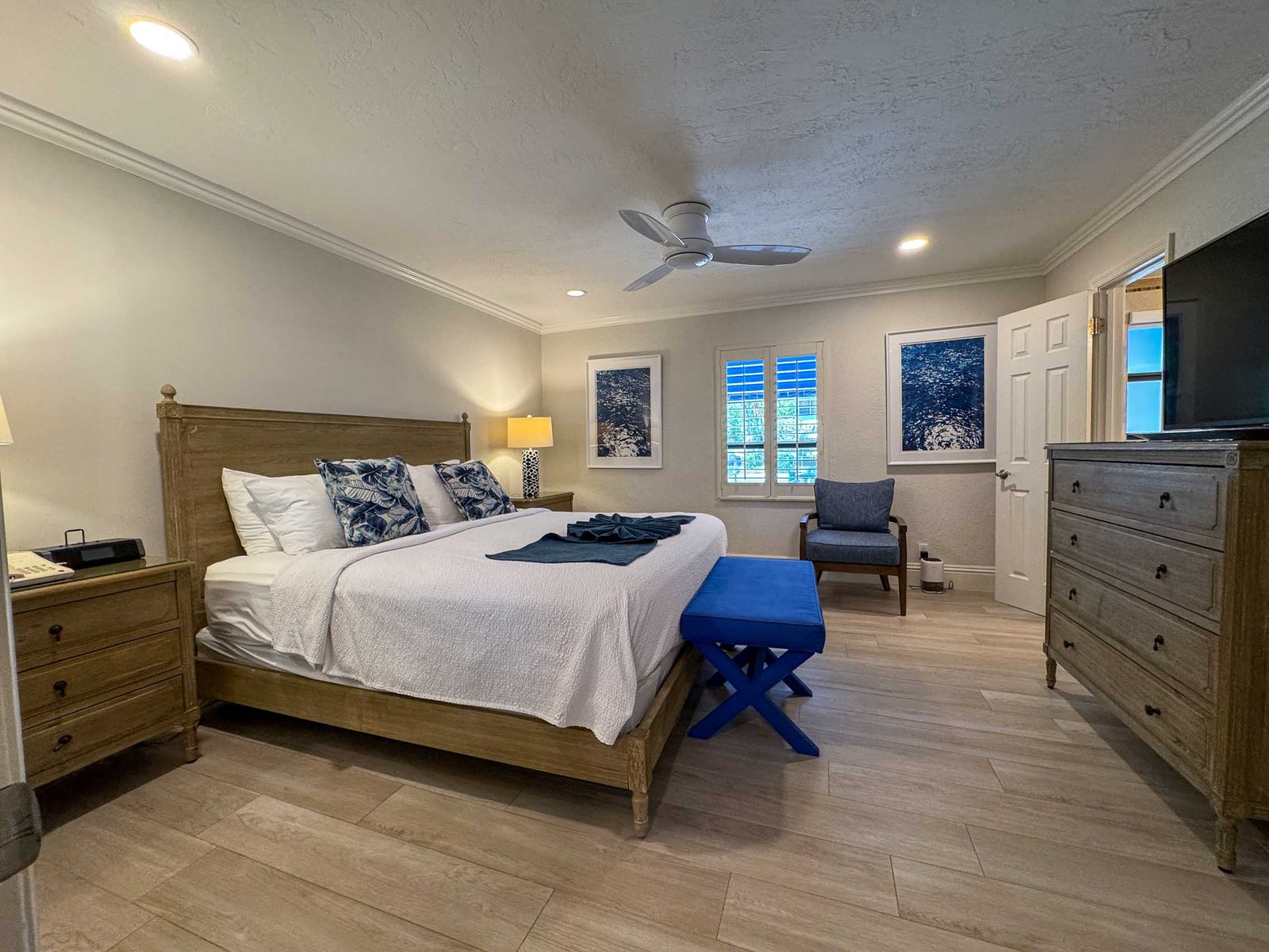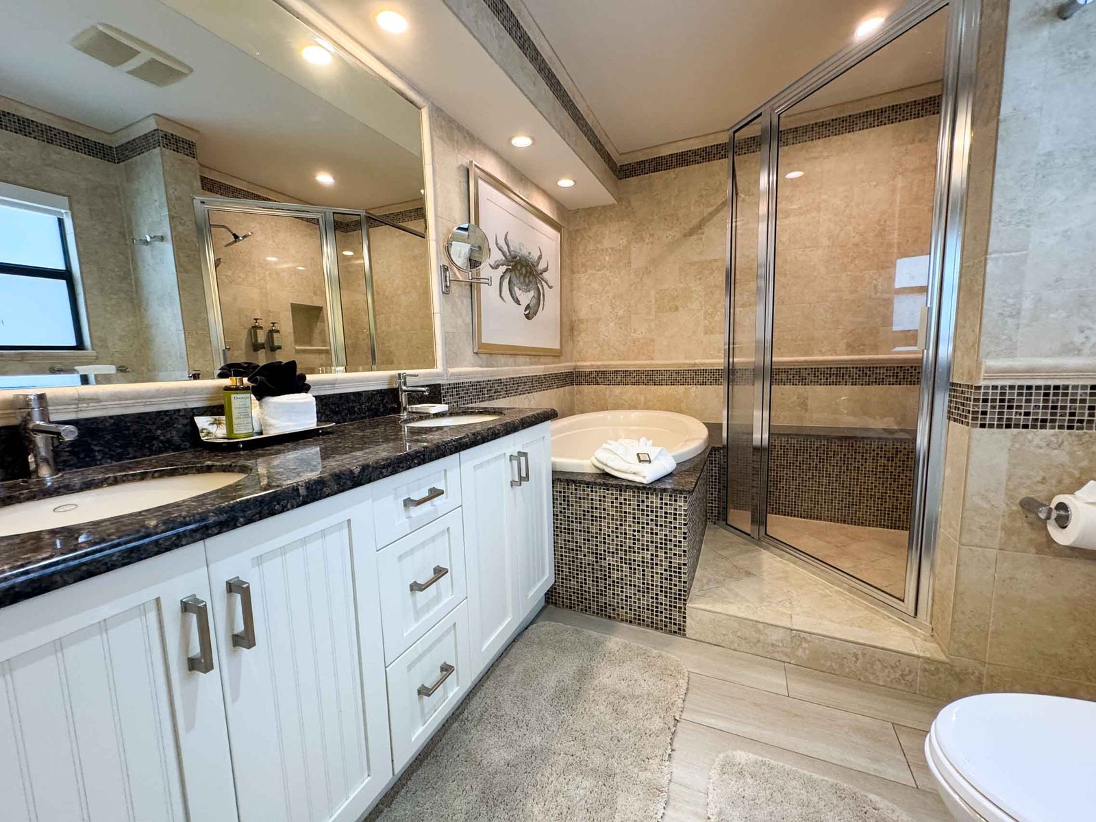 Our newly renovated Beach House is as private as it gets. Enjoy two spacious bedrooms, each with a king bed and private fully appointed baths, one with its own Jacuzzi tub and shower. There is a large living room with a queen sleeper sofa and a half bath. A fully equipped kitchen and a separate dining area offers a beautiful view of the beach side garden and the Atlantic ocean. A set of French doors lead out to the grand terrace patio with a large tiki hut and barbeque area with views of the coastline and the famous Lauderdale-by-the-Sea pier, looking north to the Hillsboro Lighthouse.