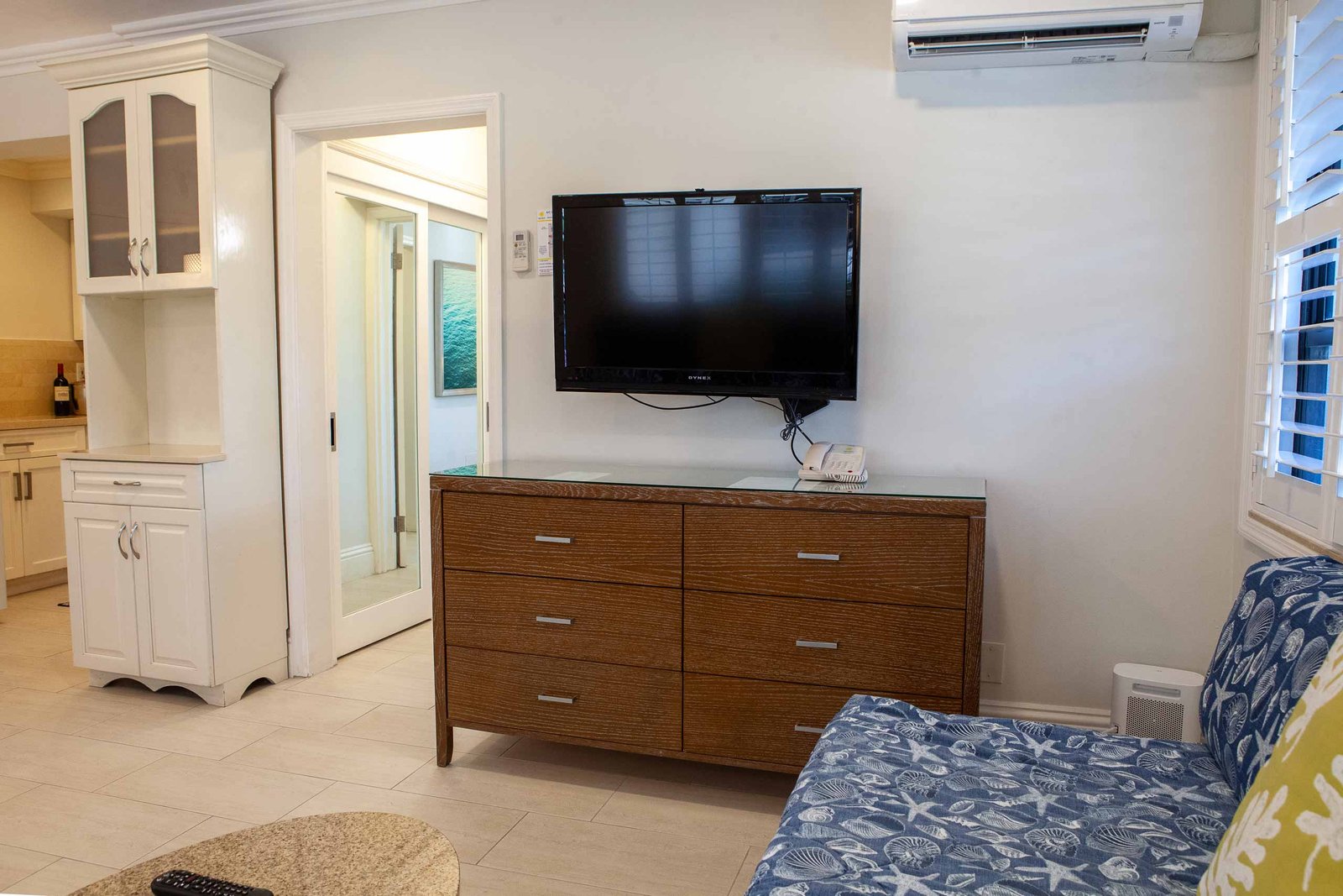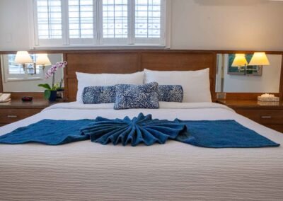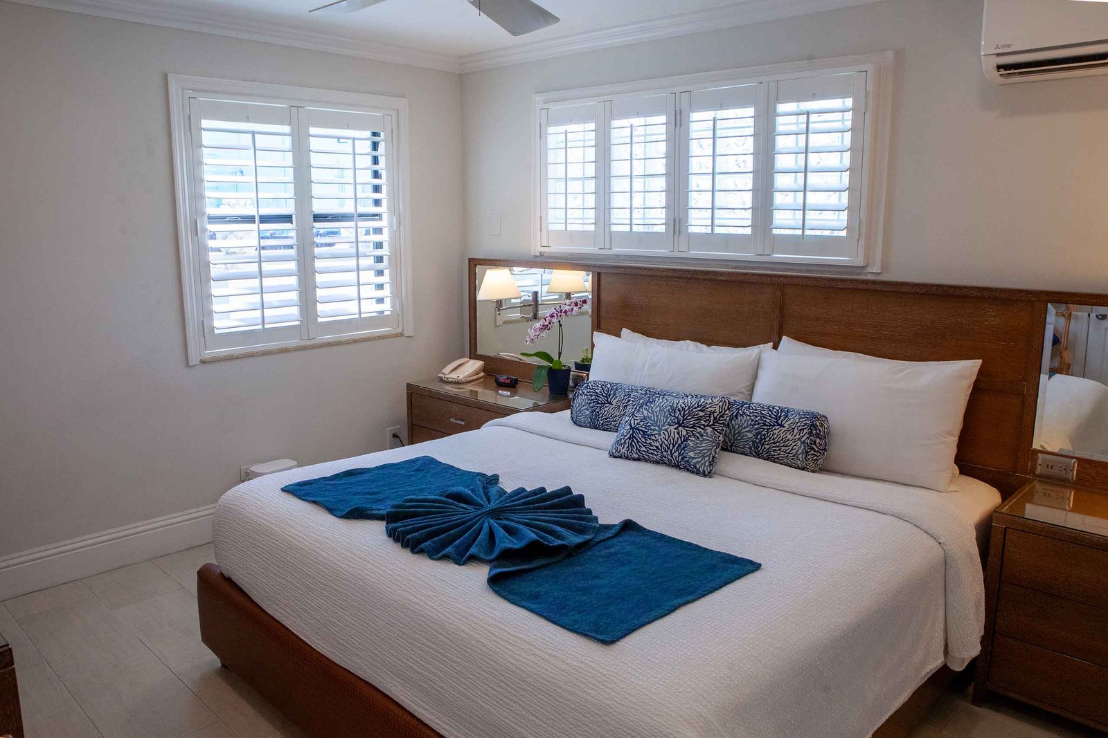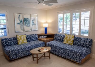 Our spacious One Bedroom Suites in The Sea Foam are some of our most popular rooms. They each have a separate bedroom with a king size bed and bath. The living room has two Bahama beds*, kitchen with dining area and a second bath.