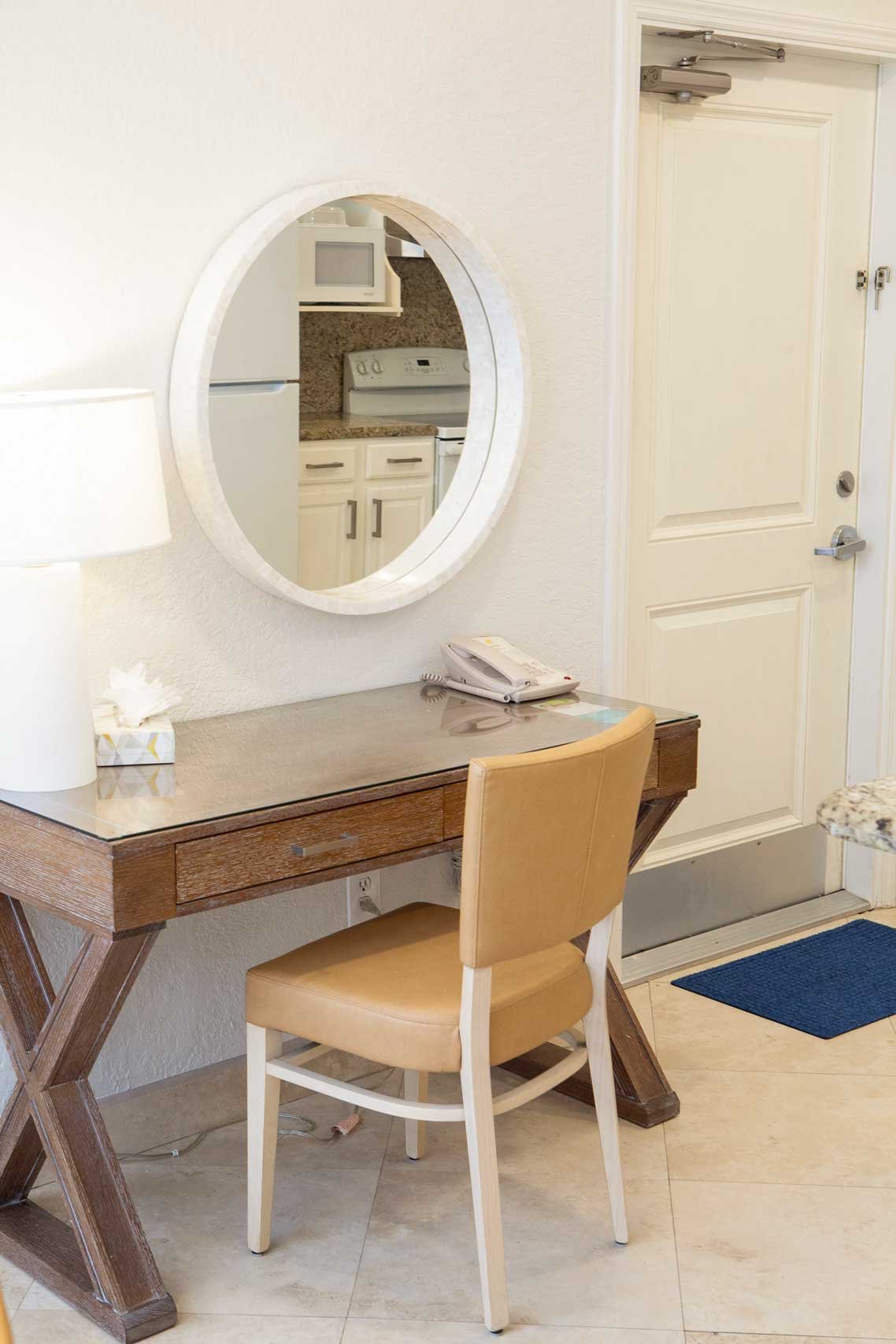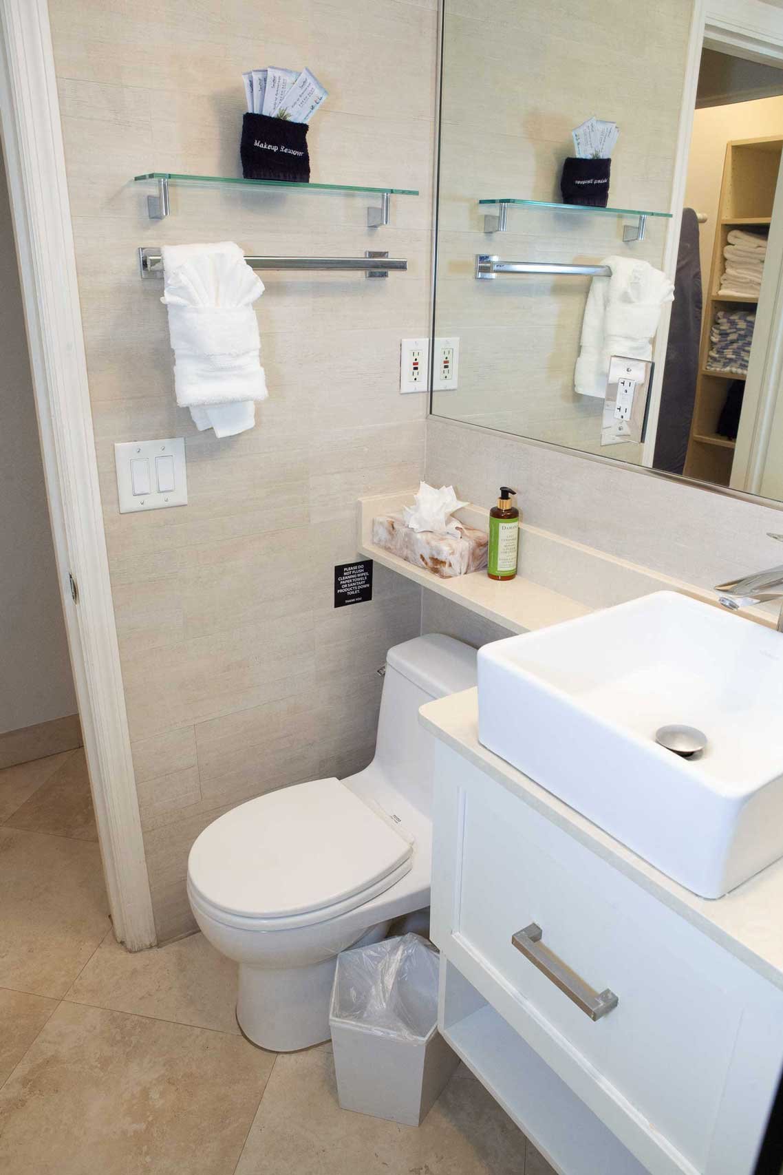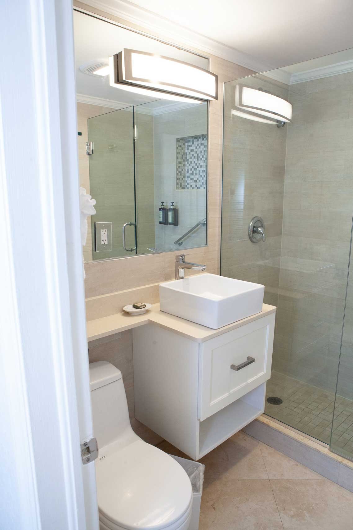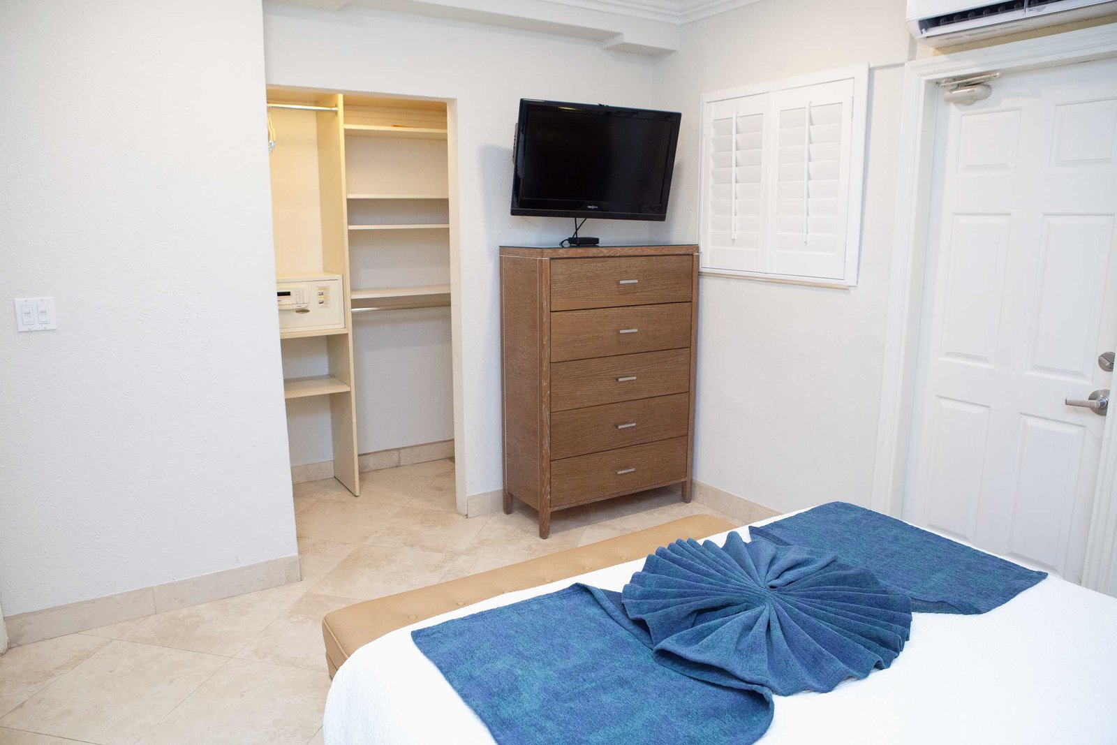 The other option is The Sea Foam Two-Bedroom Suites, which consist of a One-Bedroom Suite, connecting to a Hotel Room. There is a king bed in the bedroom with two Bahama beds* in the living room with an additional king bed in the Hotel Room. There is an additional king or queen bed in the Hotel room and a total of three full baths in this combination. Each sleeping area has its own flat screen TV as well as the living room, making this a great space for larger families or groups to share.